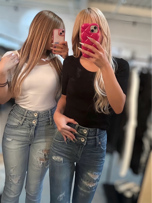 CROCHU BASIC ジャストフィットUネックTシャツ