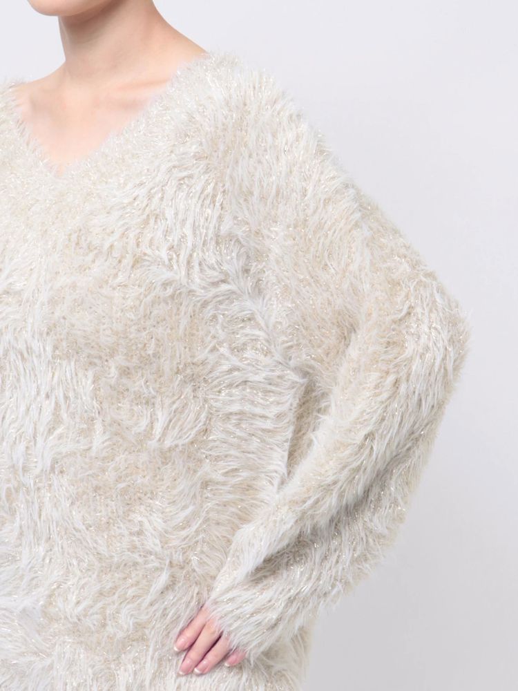 着心地良く女性らしさ高まるシャギーニットに