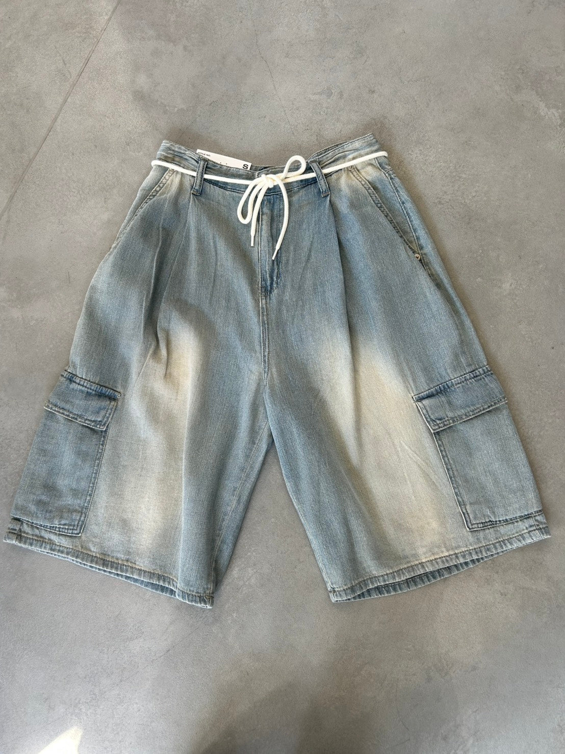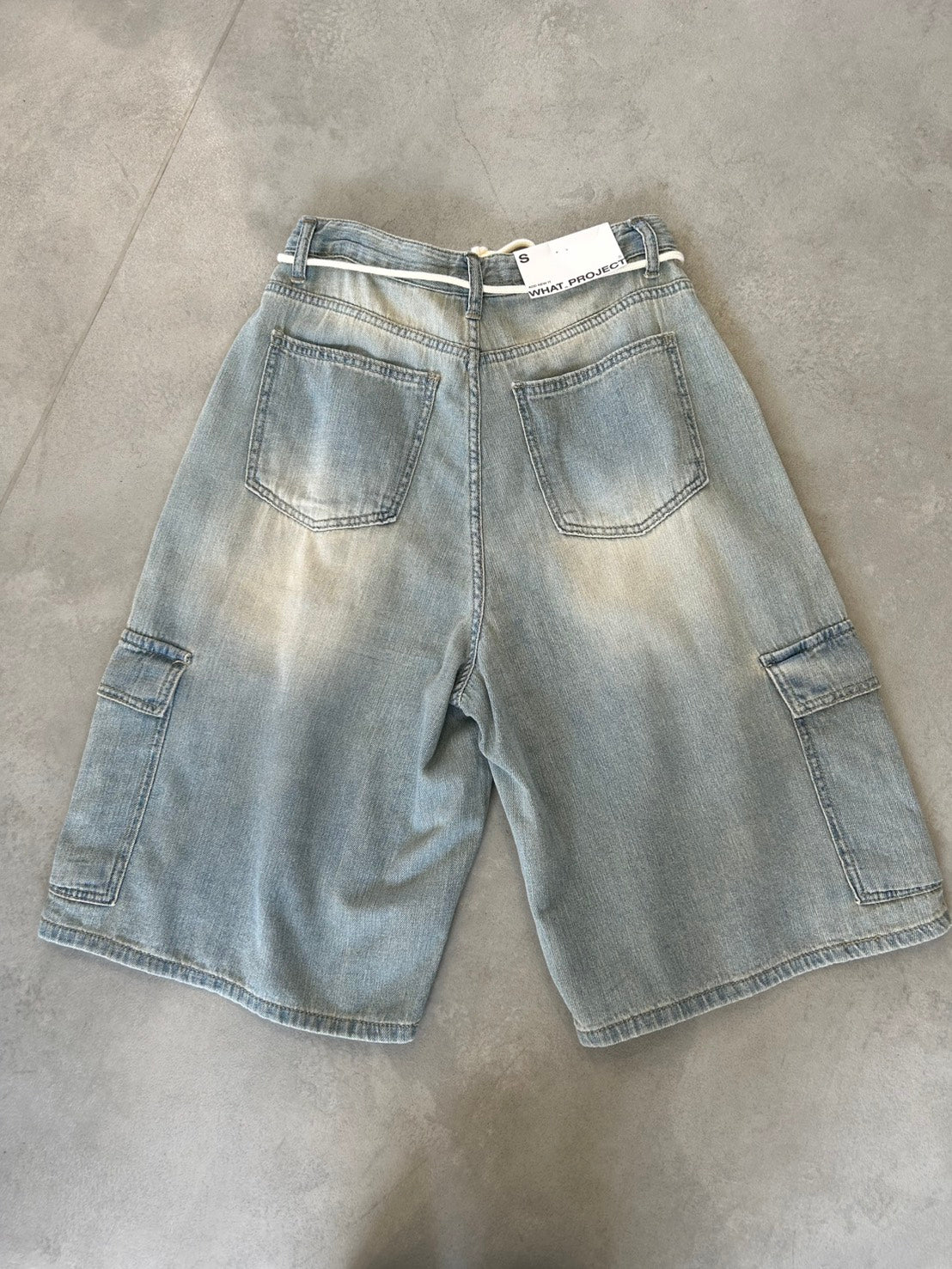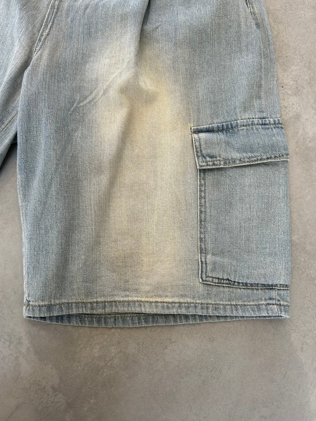 ライトウォッシュのデニムカーゴパンツ