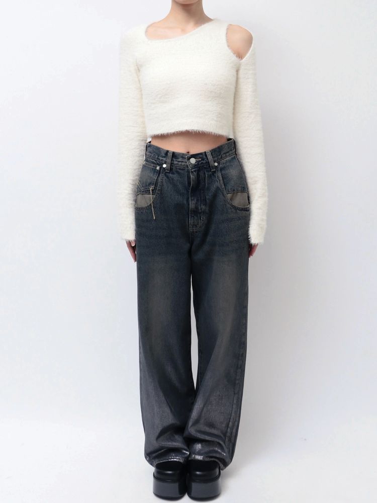 クロップド丈なのでハイウエストのスカートやデニム等で合わせて頂くのがお勧めです。