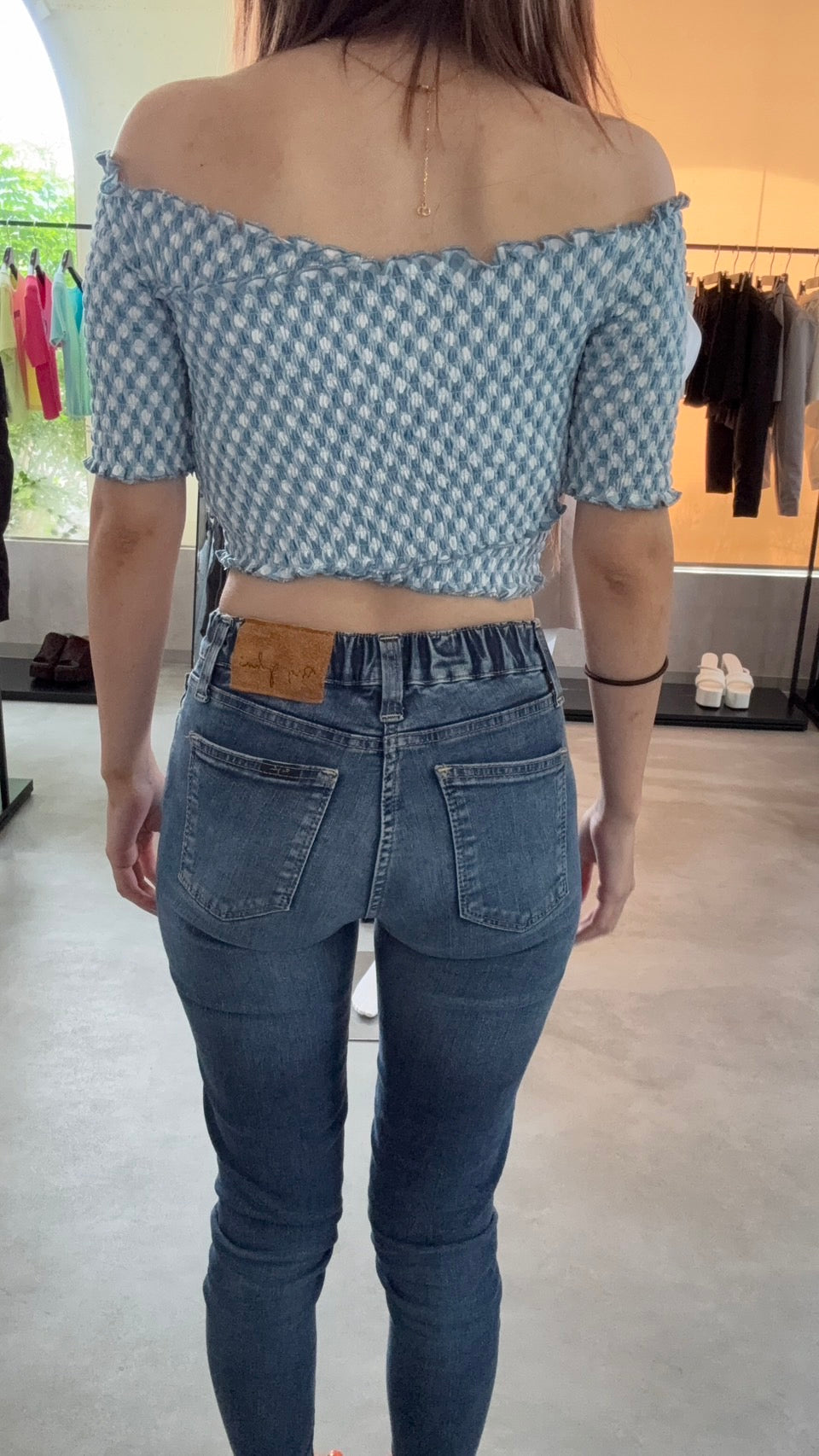 ハイウエストアイテムと合わせるのがバランスが良くおすすめです。