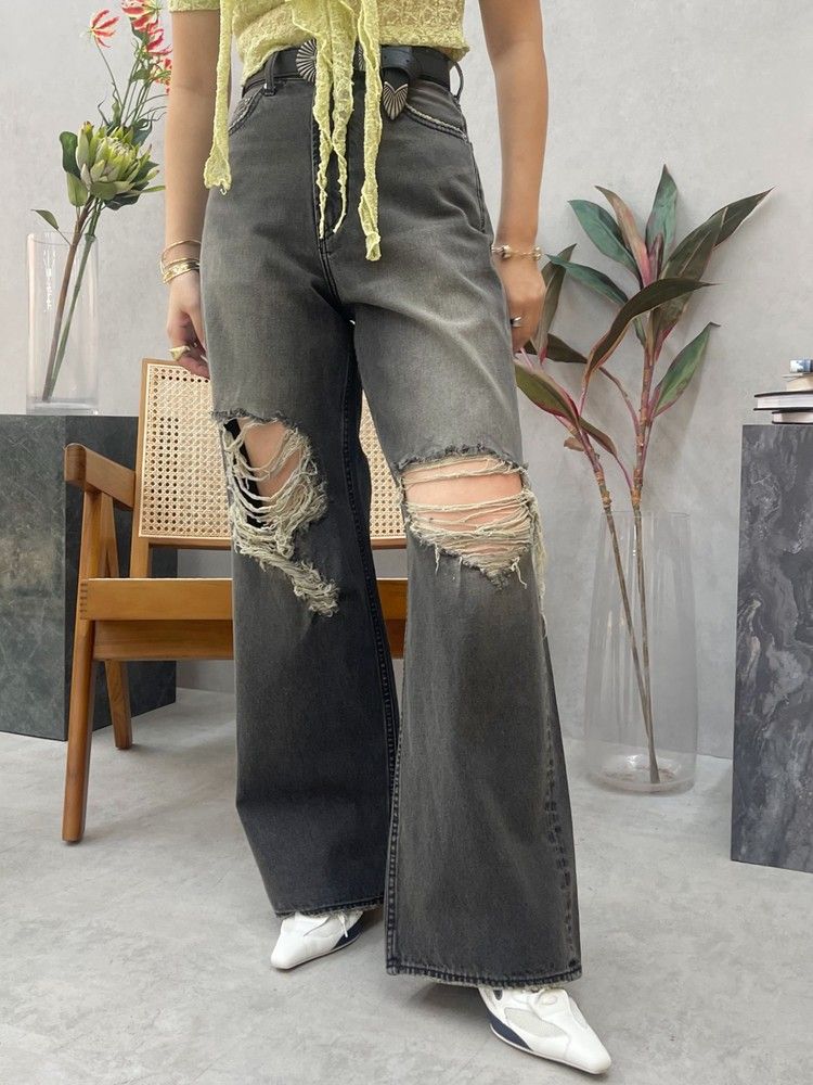 EVRIS グランジダメージワイドデニムパンツ