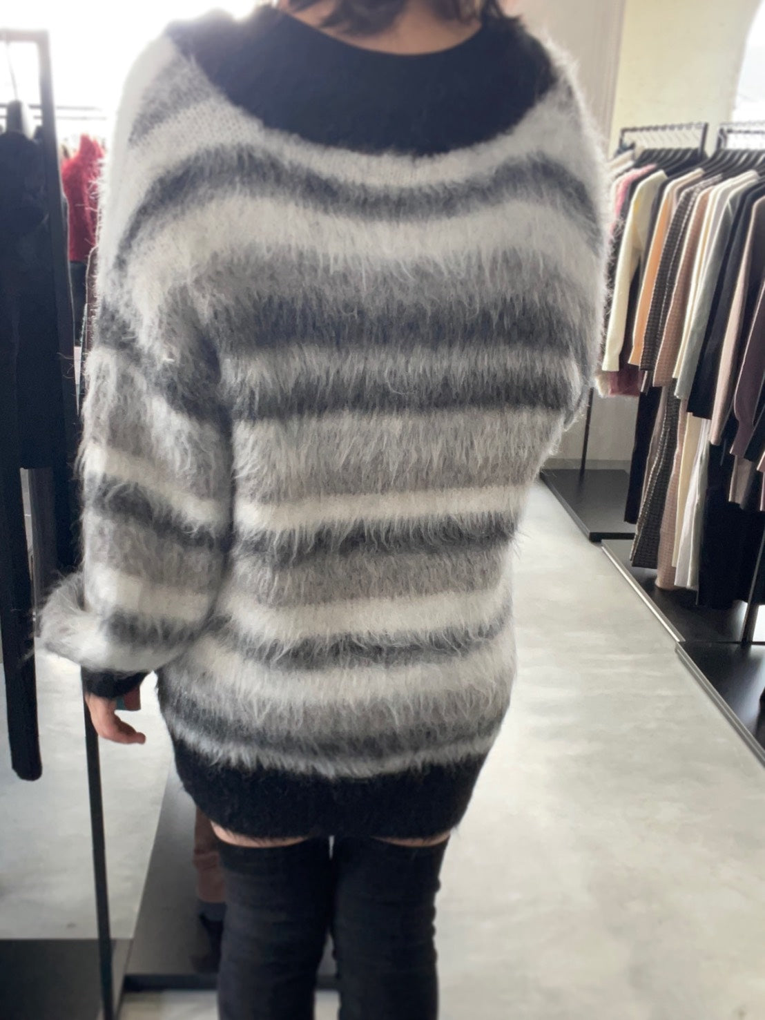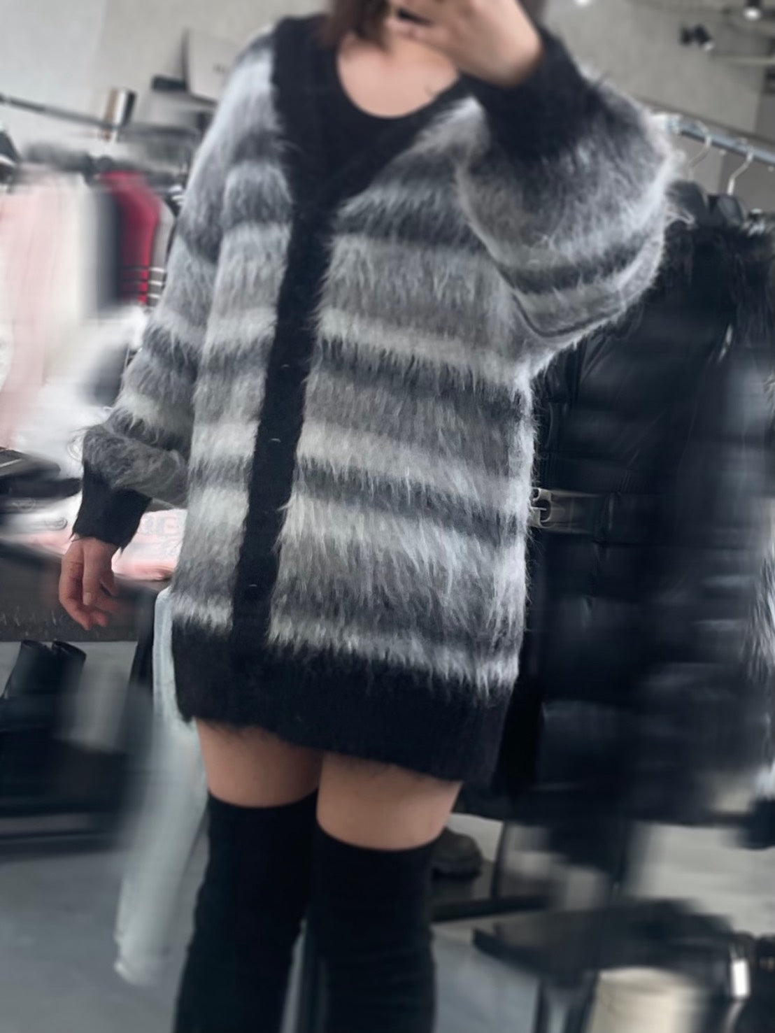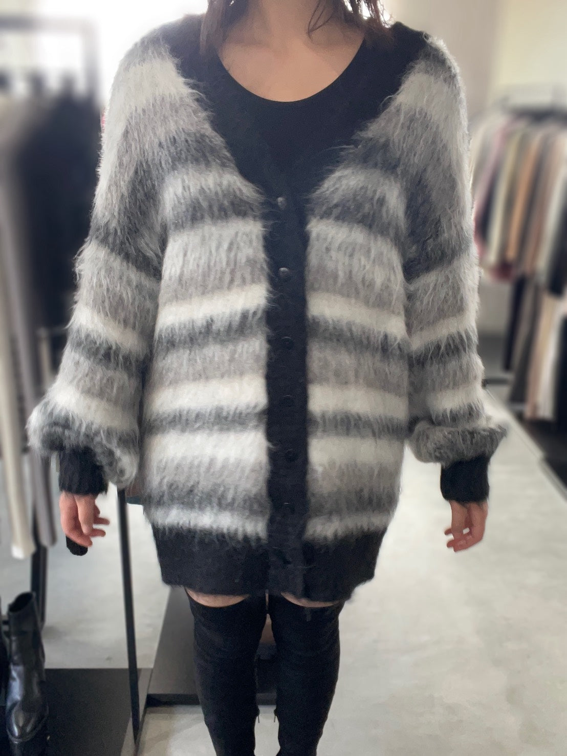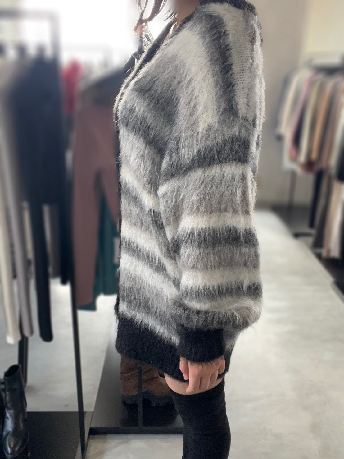 EVRIS ソフトシャギーボーダーニットカーディガン