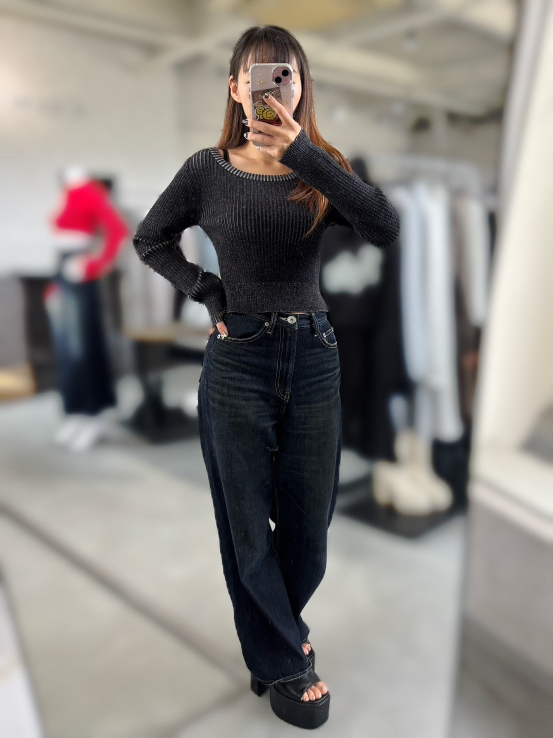 タイトすぎず伸縮性のある編地のため、ストレスフリーに着用できます。