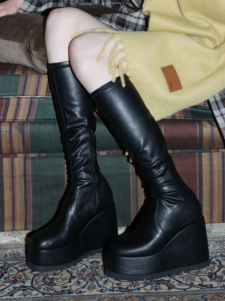 EVRIS ロングチャンキーヒールブーツ
