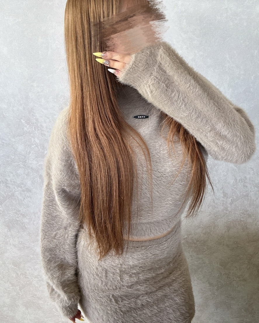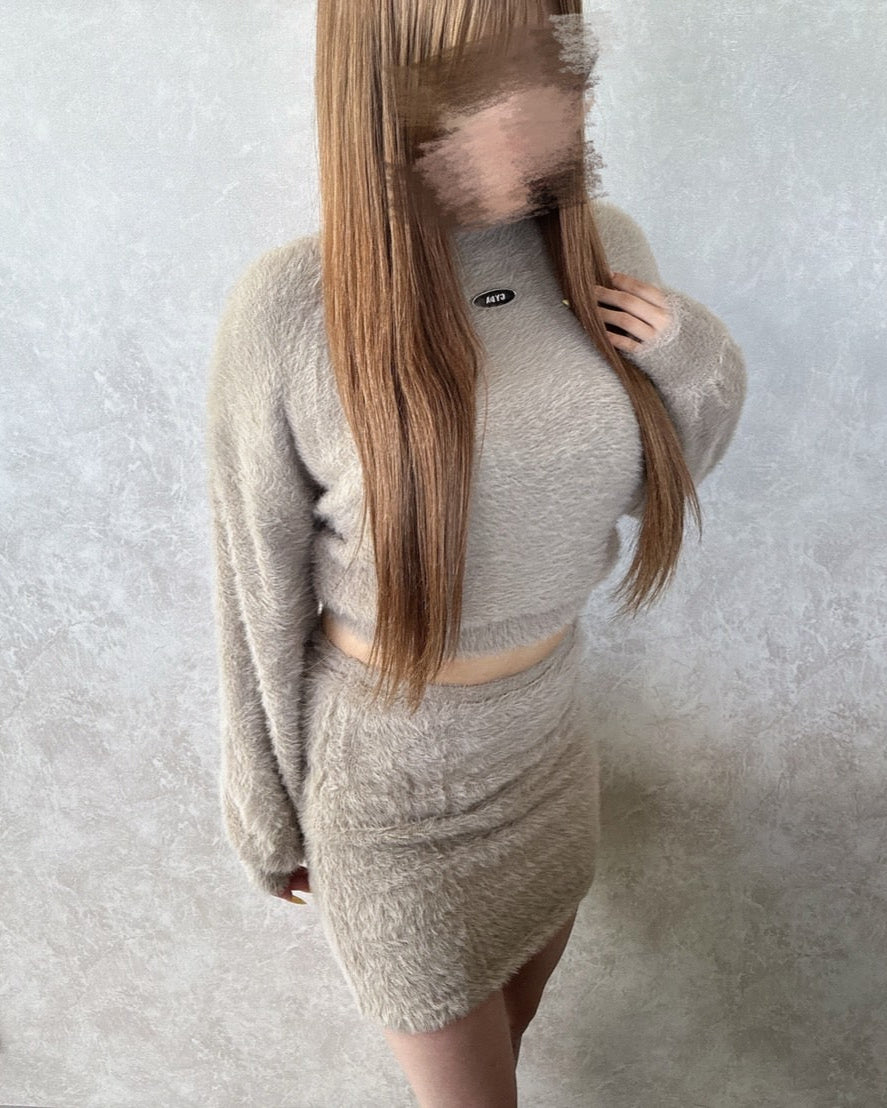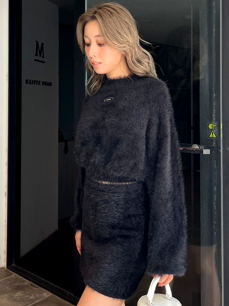 女性らしいシャギーのニットを使用したハイウエスよりのニットスカートです。
