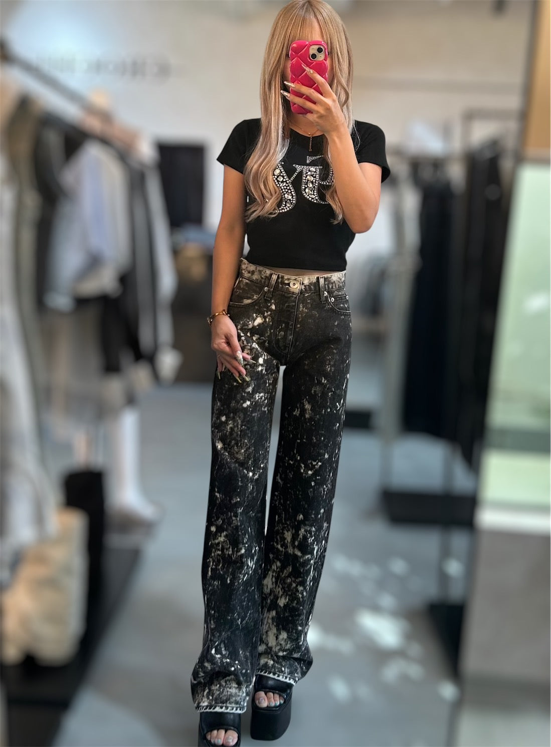 GYDA ハイウエスト Tie Dyeワイドデニムパンツ