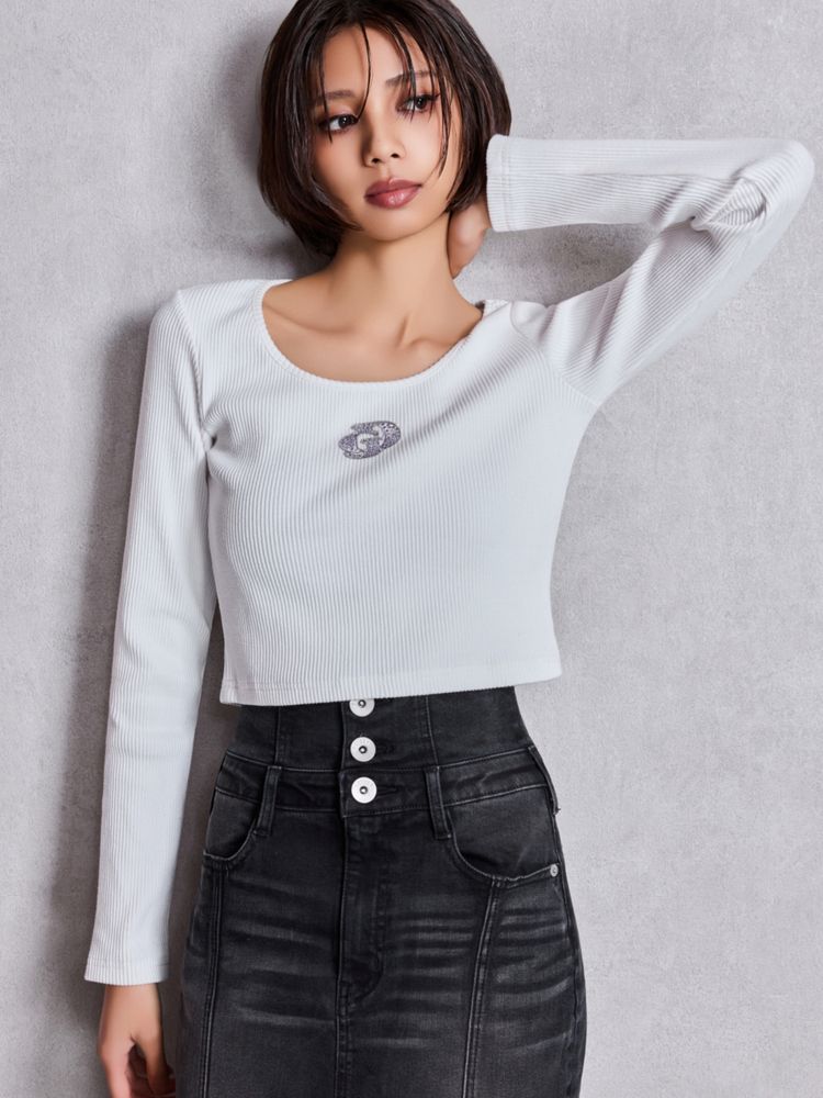GYDA GDロゴラインストーンテレコトップス