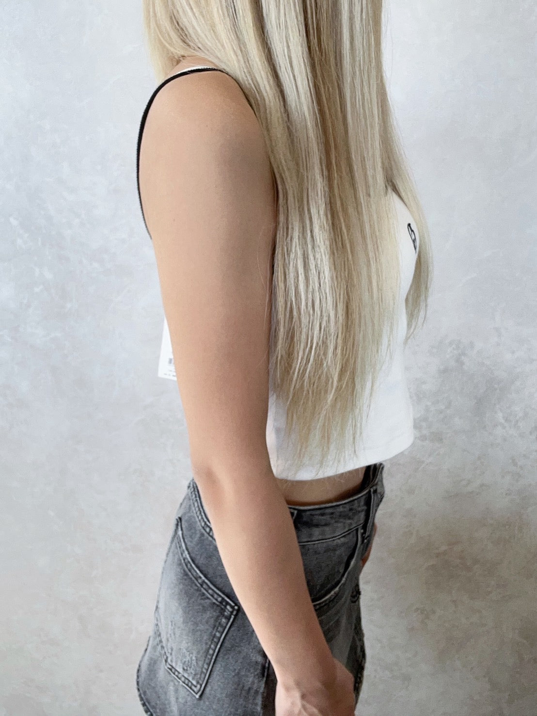 肩紐とロゴのデザインポイントが上部にあることで目線が上に行きスタイルアップ効果◎