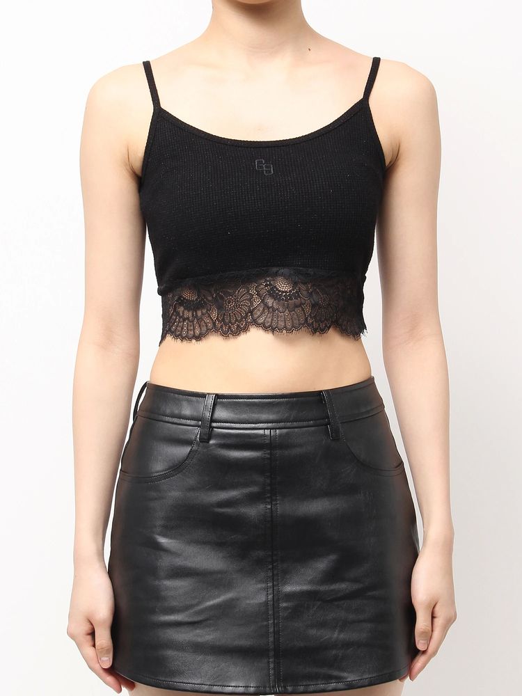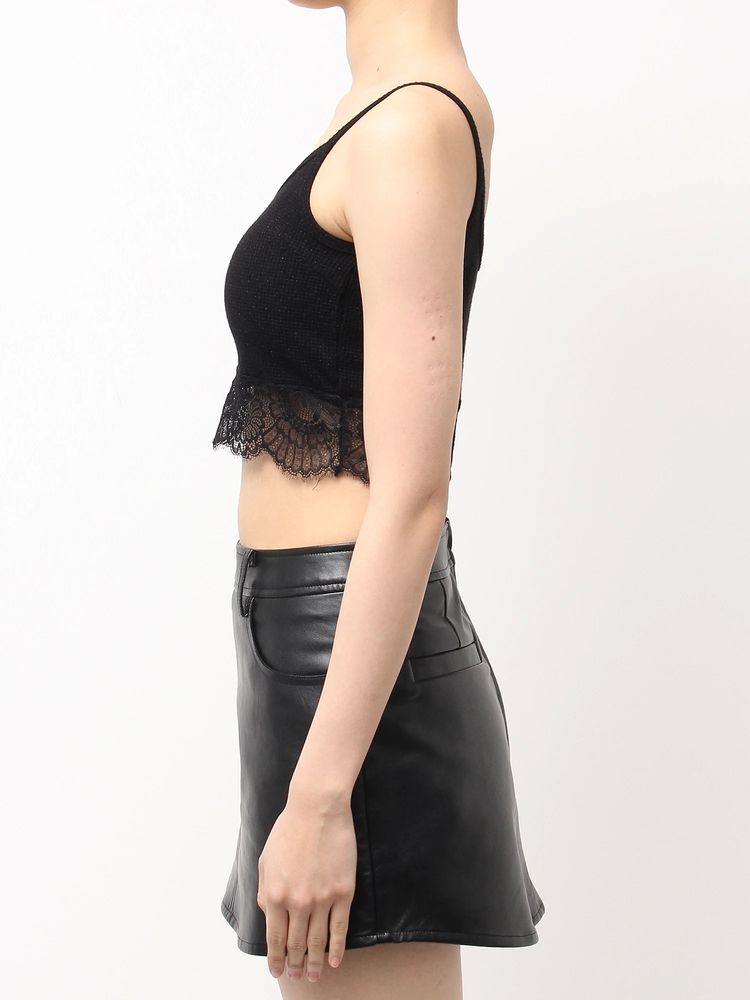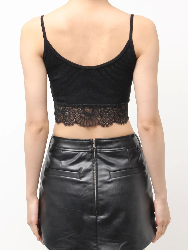 ラメが入ったワッフル素材+女性らしいアンダーレースのビスチェ。