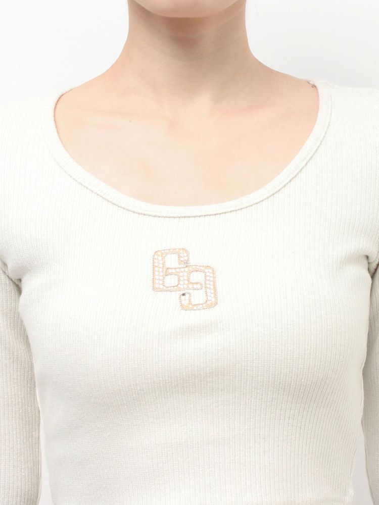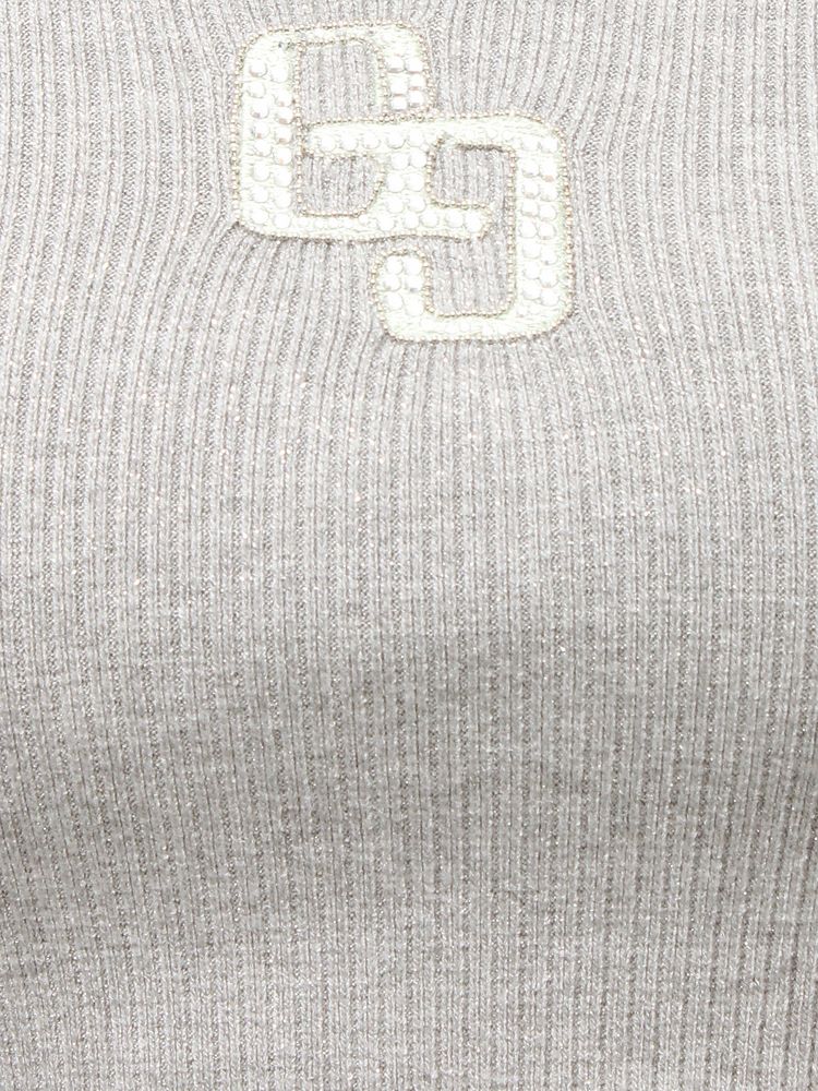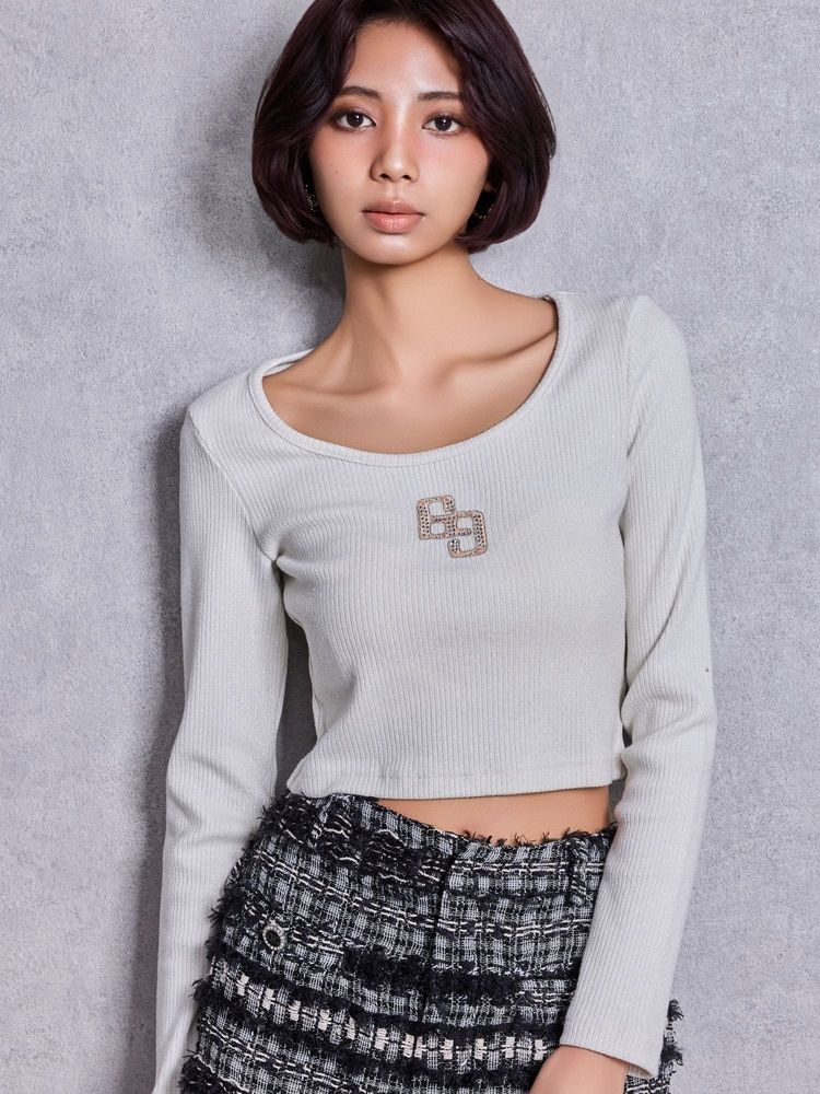 ラメテレコ素材を使用したショート丈のシンプルで使いやすいトップス。