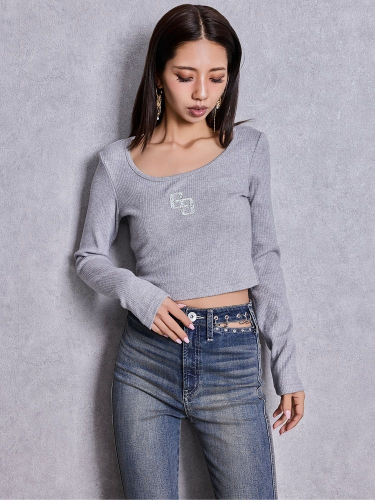 フロントにはラインストーンのGGロゴをボールチェーンで囲んでインパクトのあるデザインに仕上げました。
