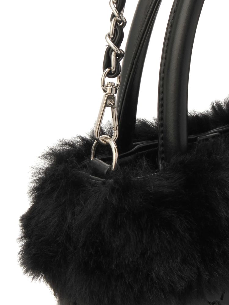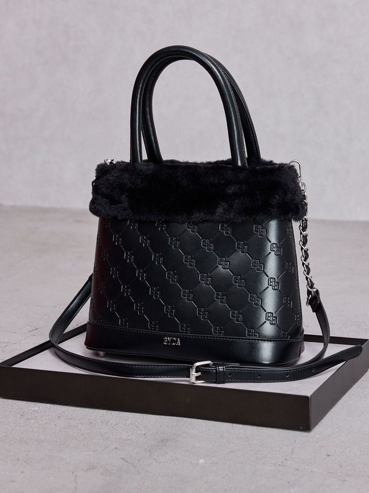 GGエンボスが施されたフェイクレザーのバックにファー素材がついたホリデー感満載のバック。