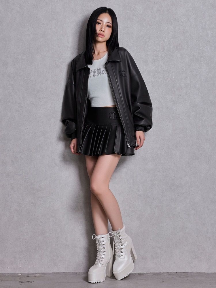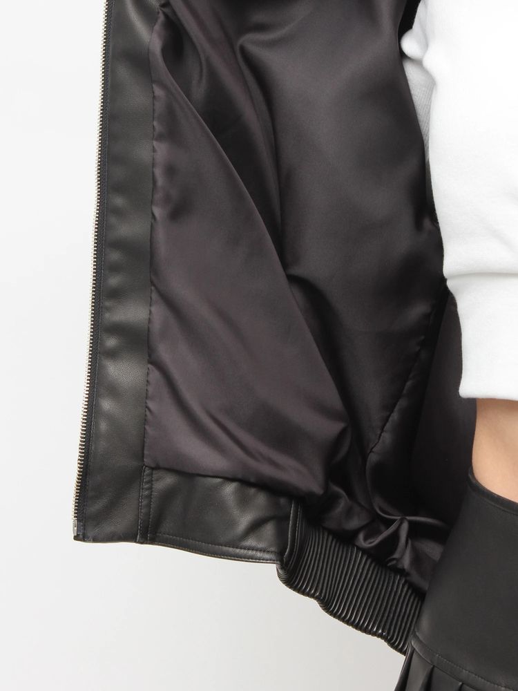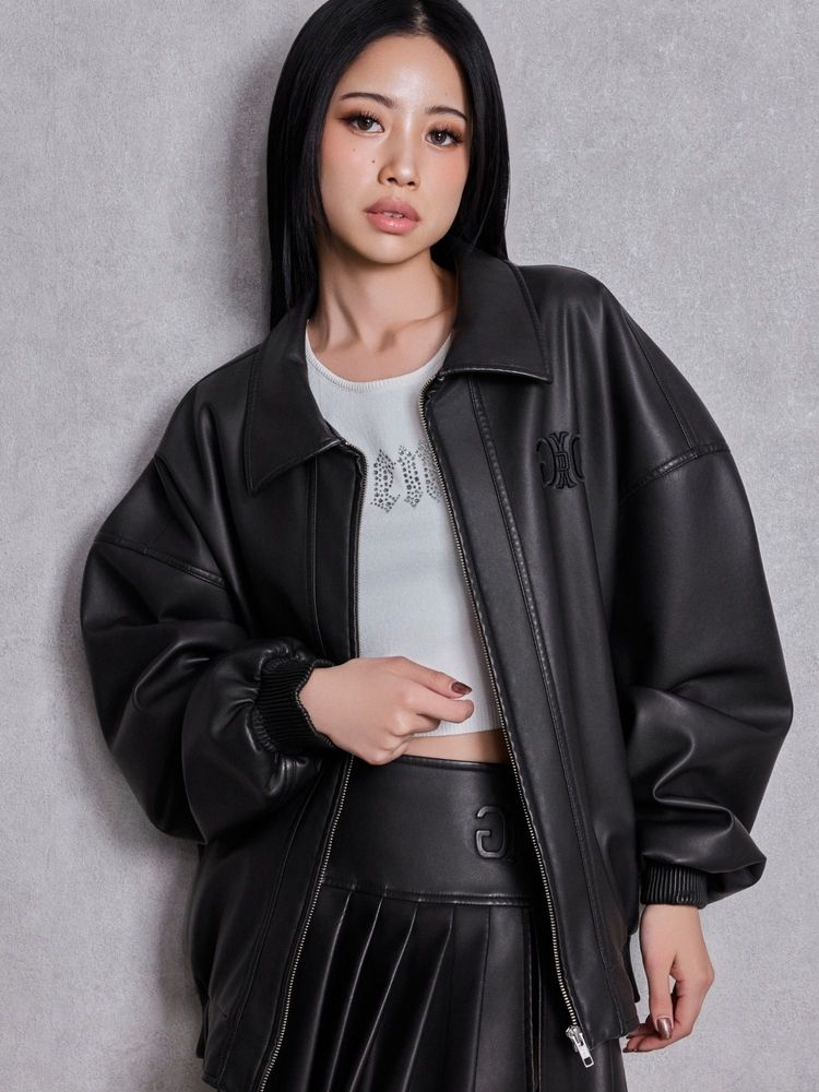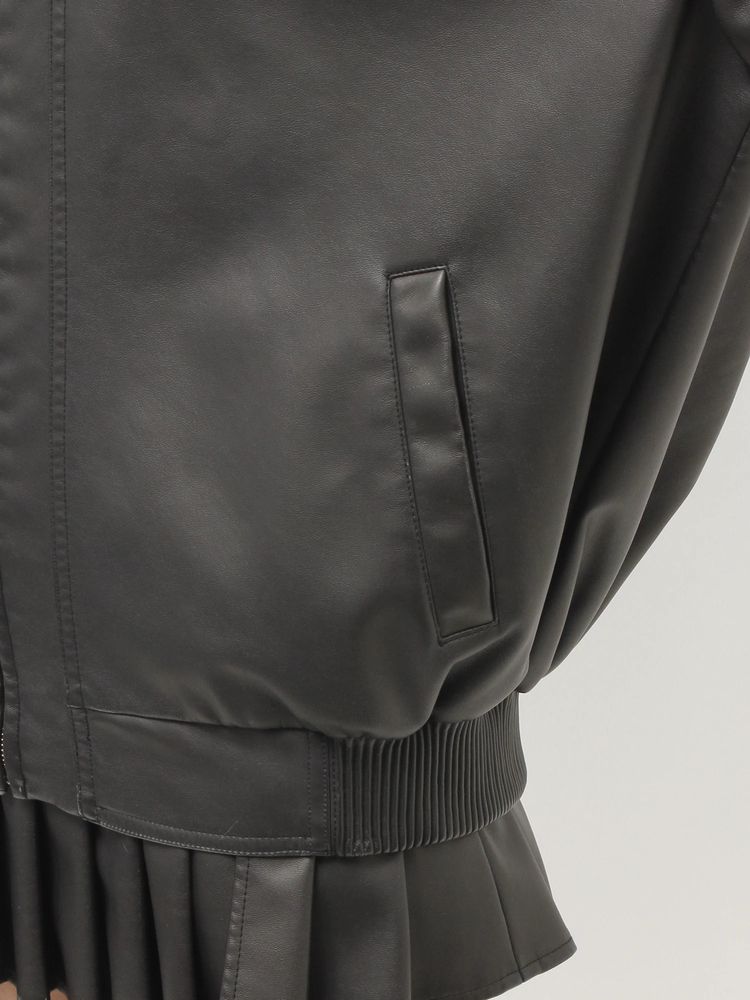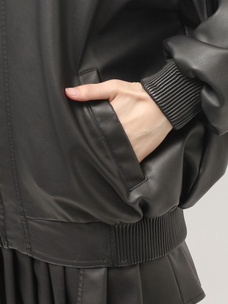 加工を施したフェイクレザー素材を使用し、シルエットはヒップが隠れるビッグシルエット。