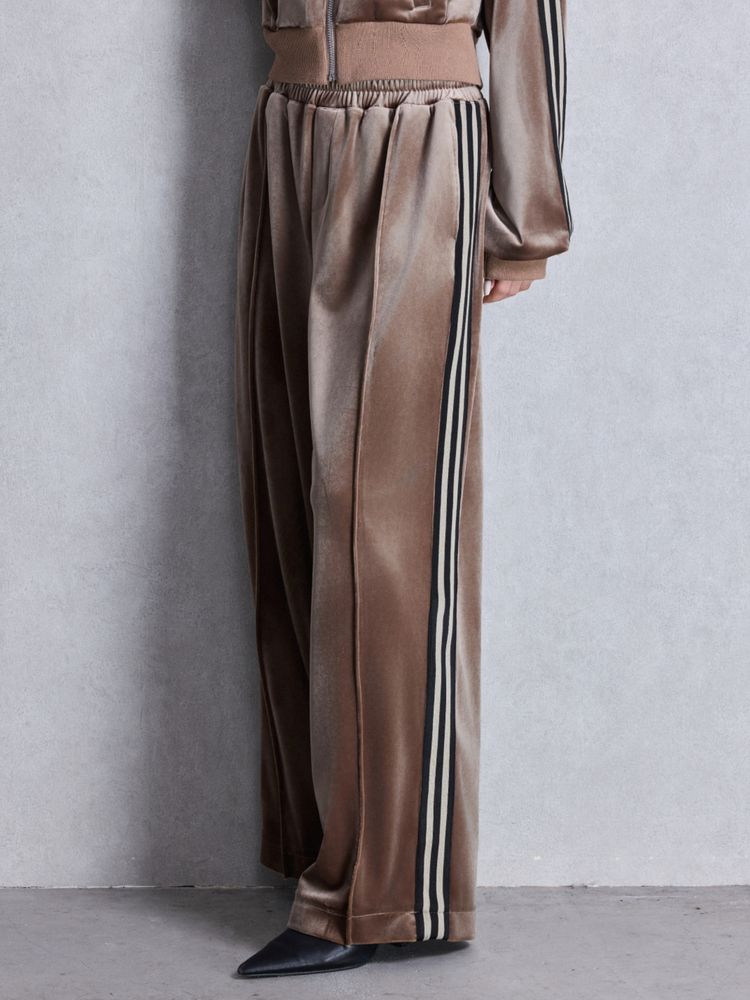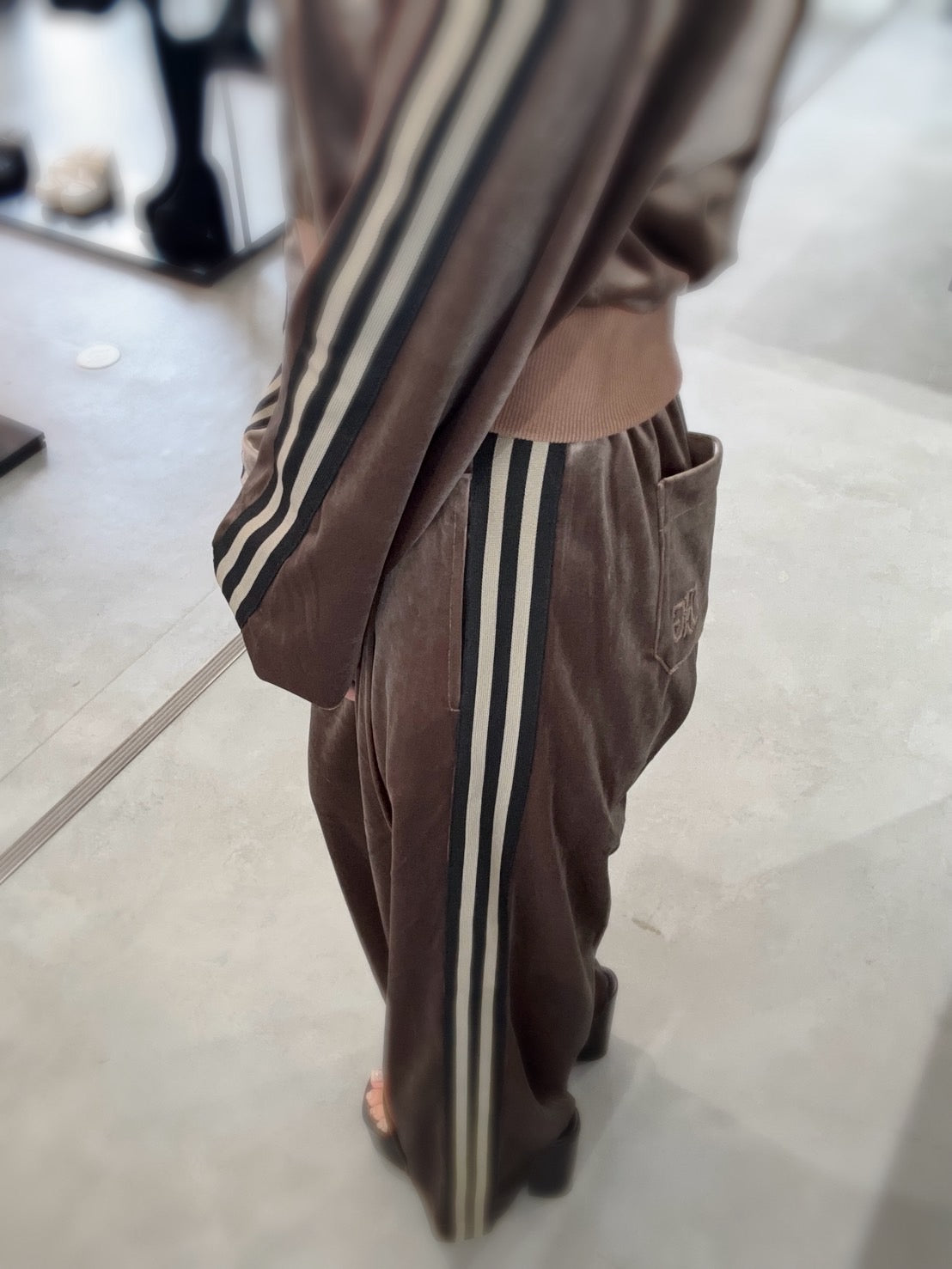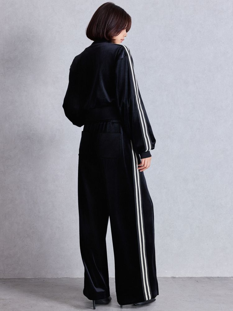 上質なベロア生地をデイリー使いしやすいカジュアルなロングパンツで表現してみました。