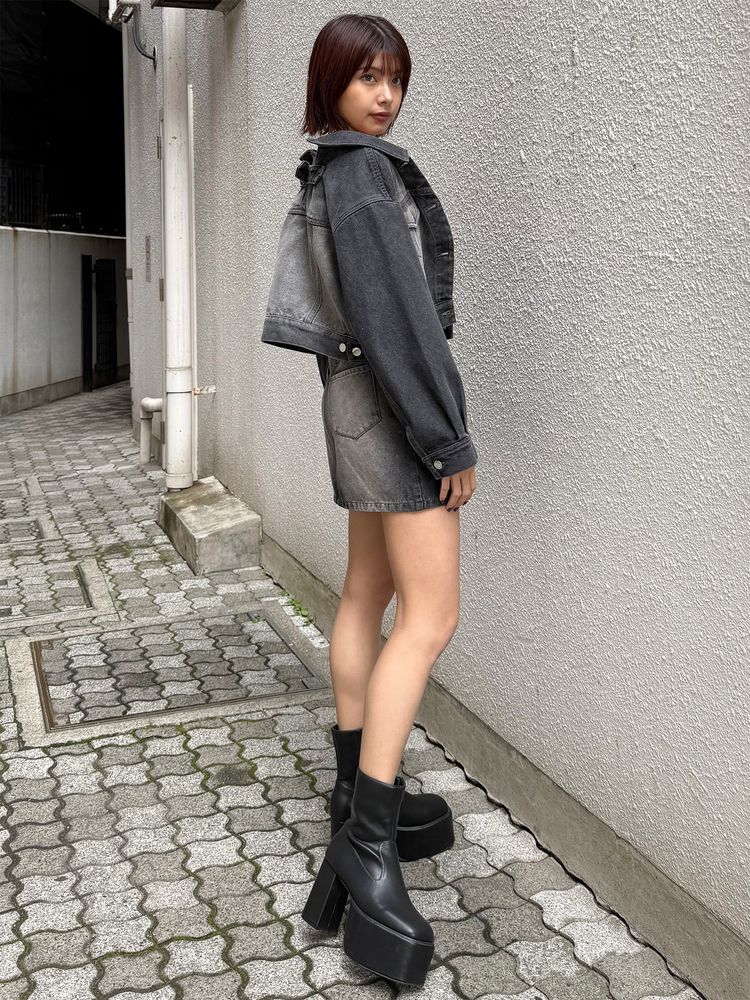 前に入ったフロントジップがエッジを効かせ、モードな印象に仕上げています。