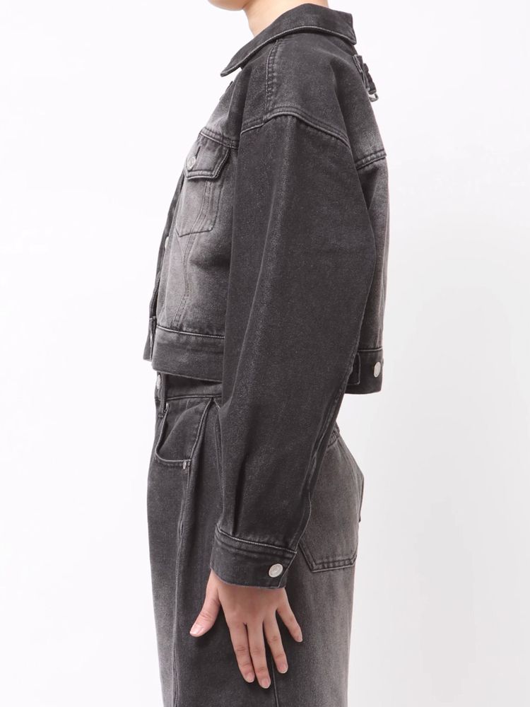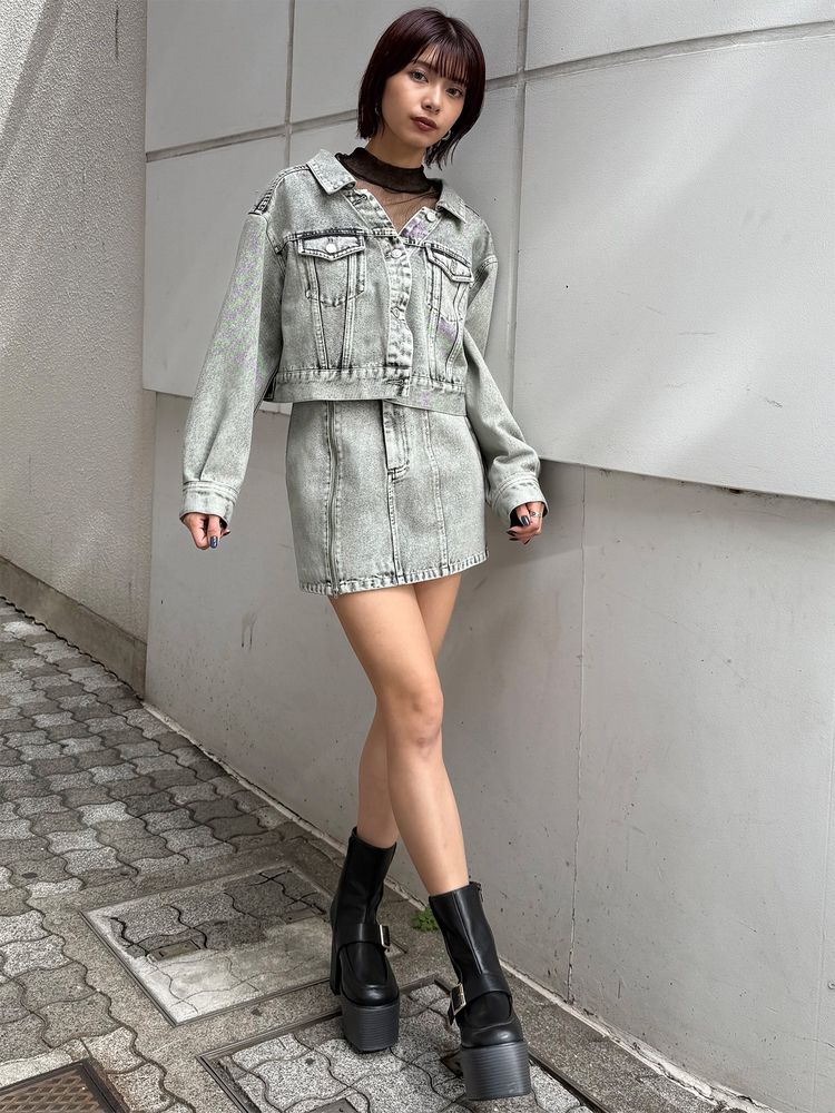 同素材のミニスカートやワイドパンツとのセットアップスタイルで統一感のある着こなしに。
