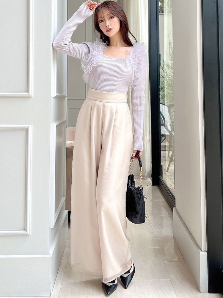 シアーをレイヤードした抜け感のあるワイドパンツ