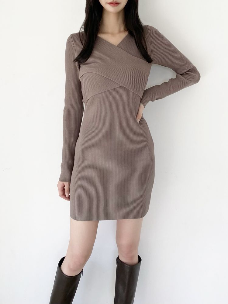 リブニット素材で軽く、着心地抜群のニットワンピース。
