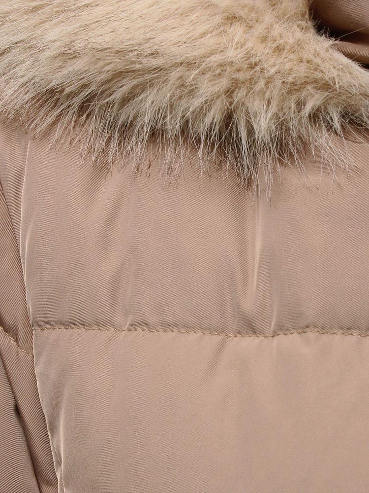 顔周りと袖口のフェイクファーはふわっとしたボリュームで高級感があり